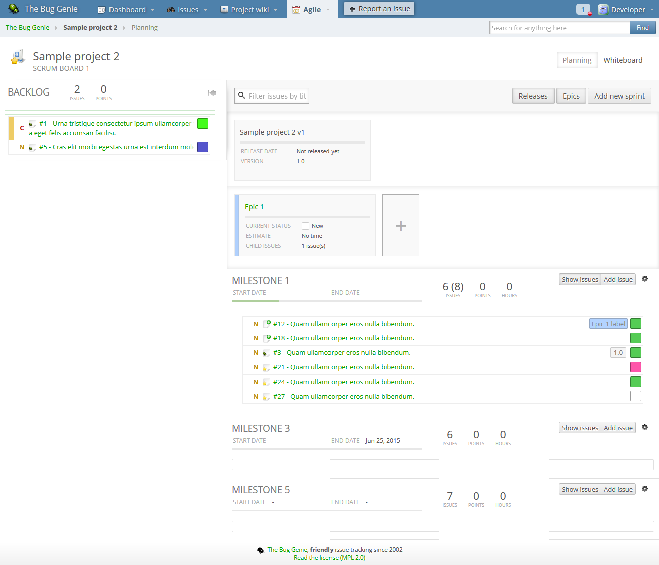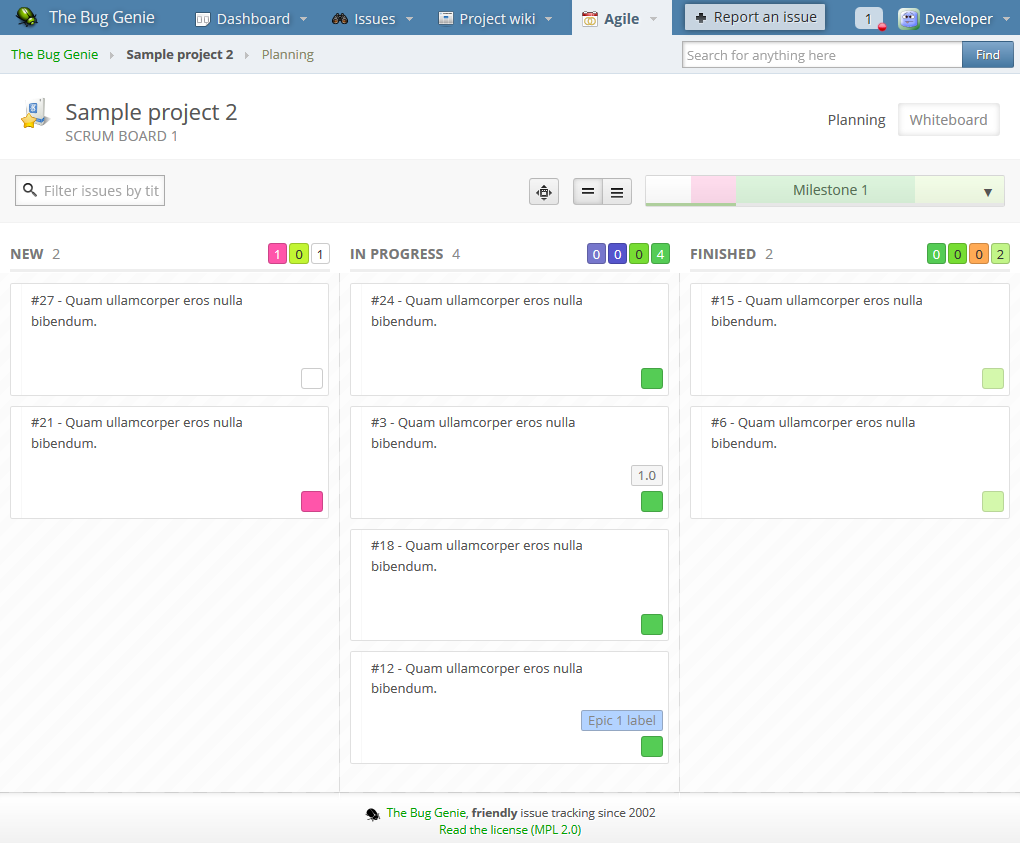 The Bug Genie supports your agile process - whether it is Scrum, Kanban or other, we've got you covered.